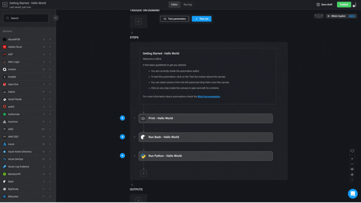 - Upon selection, your personal API key will be added to the command, allowing you to proceed using the chosen run method for your chosen Workflow.