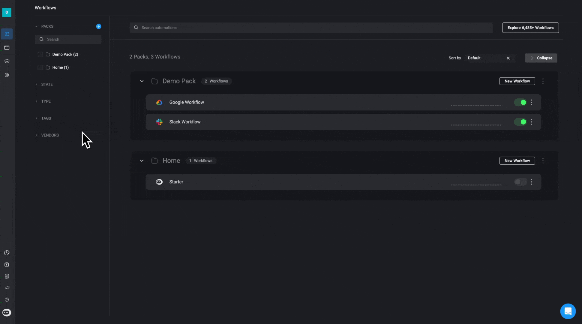 enables you to create data-segregated and separate workspaces for different teams across your company, as well as, for different use cases. Every team can have one or more workspaces. This enables team members to collaborate on projects and share automated workflows and resources efficiently. All the workflows of a Workspace appear on the Workflows Pack page.