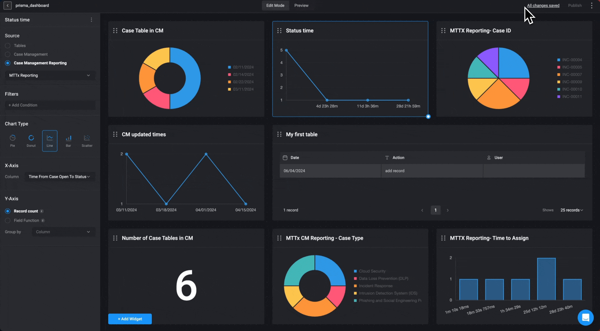 - When you make any changes to your Dashboard Building Interface, the changes are automatically saved. You will see this in top-right corner of the Dashboard Building Interface.