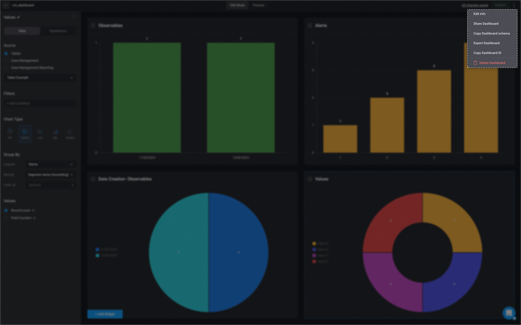 - Copy Dashboard Schema- Copies the JSON syntax of the selected Dashboard