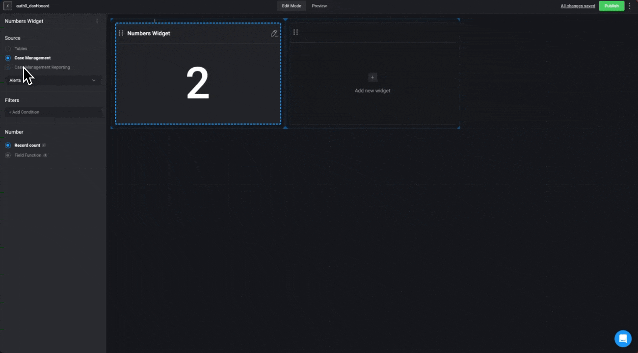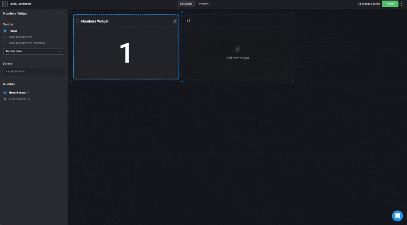 - It will display the number of records available on the selected source table on the Numbers widget.
