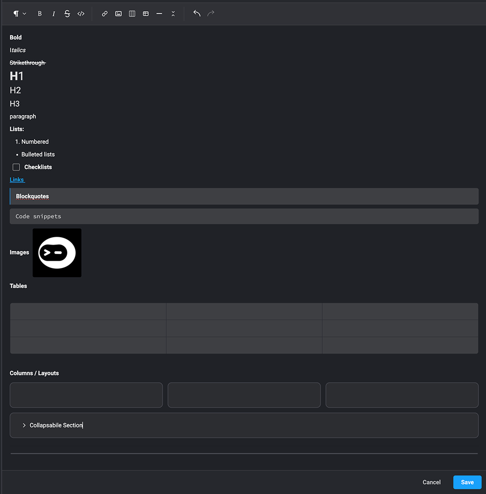 Blink’s Rich Text Editor (RTE) is a tool that allows you to create and format text with visual styles. It’s designed to make text look professional, structured, and easy to read.