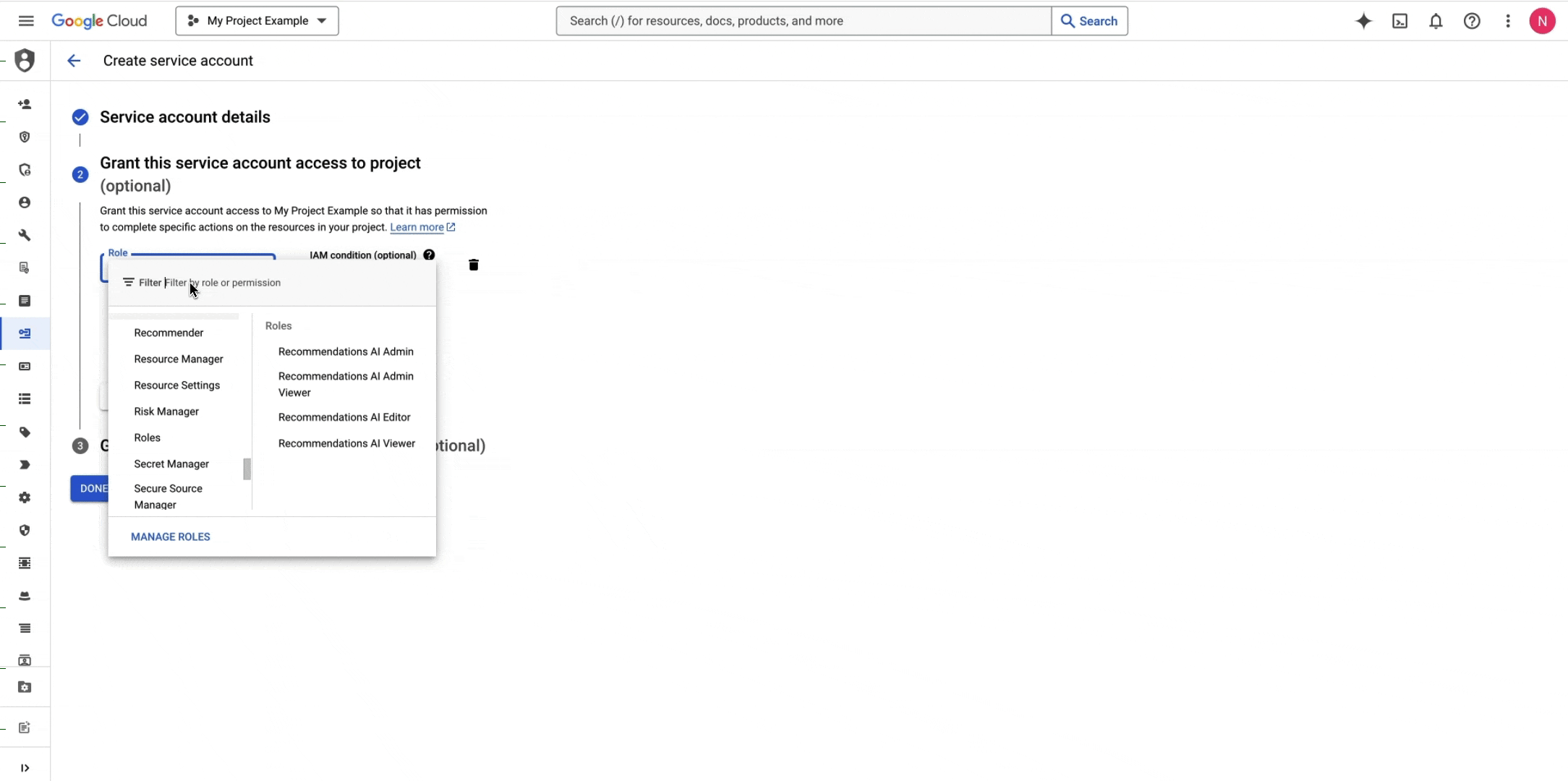 Create a GCP IAM Service Account or navigate to your GCP IAM Service Account if you already have one.