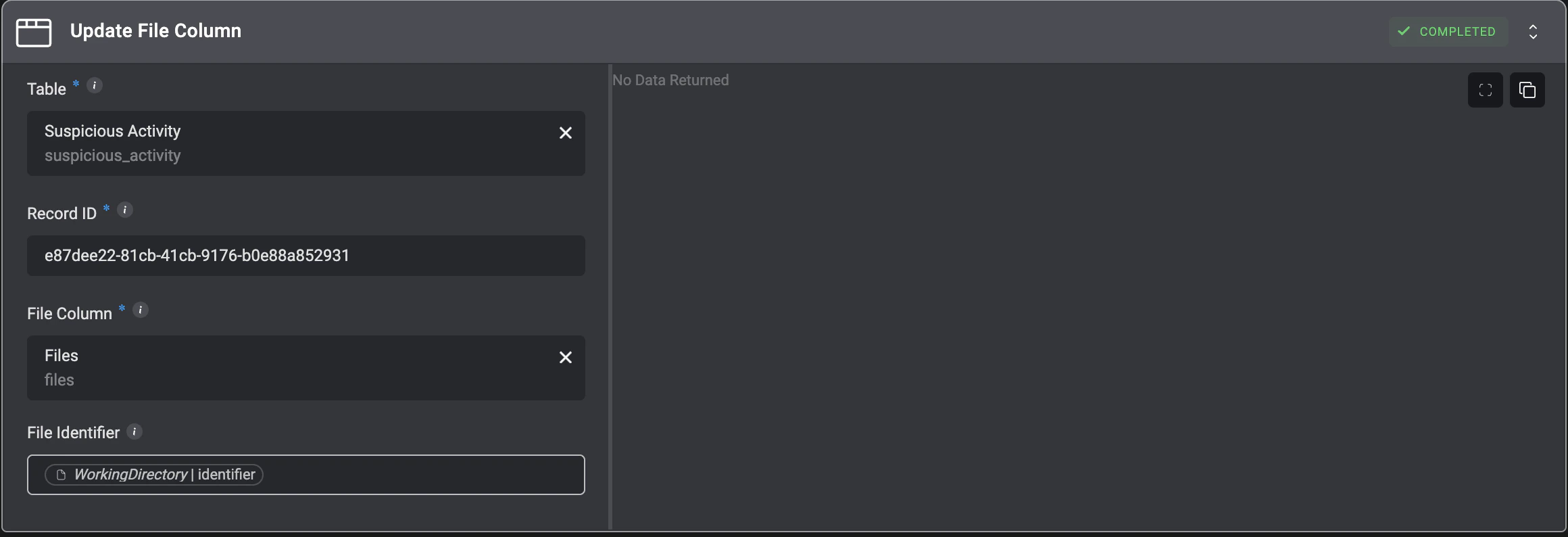 | File Identifier | The identifier of the file. Leave empty to clear the file column |
