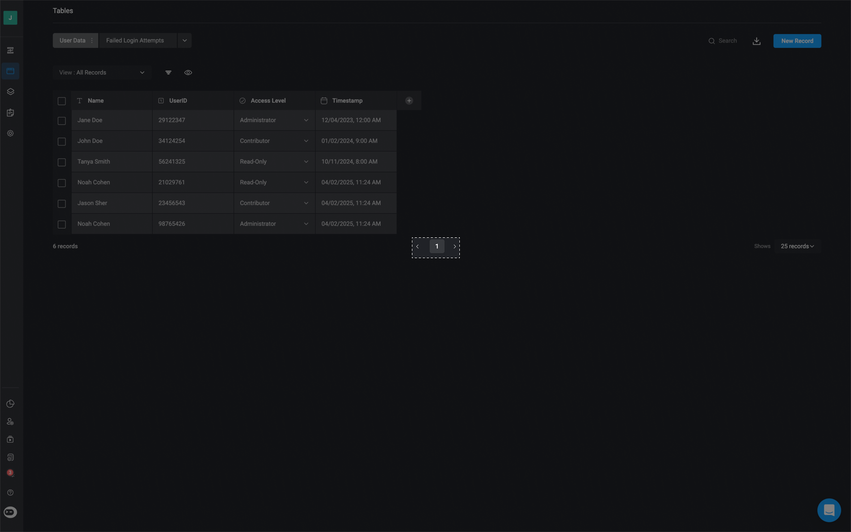 Table pagination helps manage large datasets by controlling record display and enabling easy navigation. Below are details on setting record limits and moving between pages.- Pagination