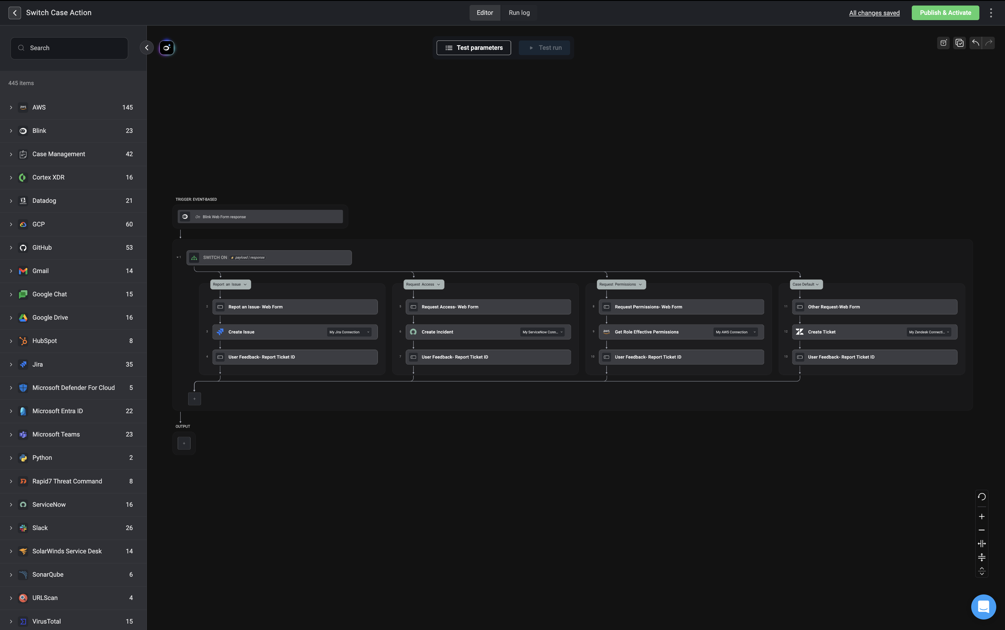 Web Forms enable the creation and sharing of secure, interactive web pages designed to gather data, collect responses, share information, and trigger workflows based on user input. This feature combines dynamic, step-by-step functionality with robust support for static and interactive flows, empowering teams to implement versatile, user-friendly workflows efficiently. This feature empowers multiple SOC analysts to make simultaneous decisions efficiently, accelerating response times and more.