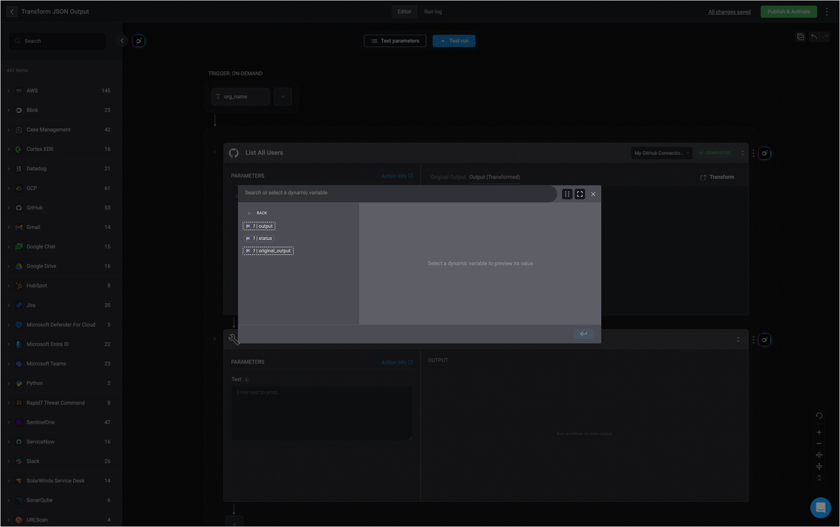 With the help of the Variable Picker, you can access a step dynamic variable and choose either the step’s original output (