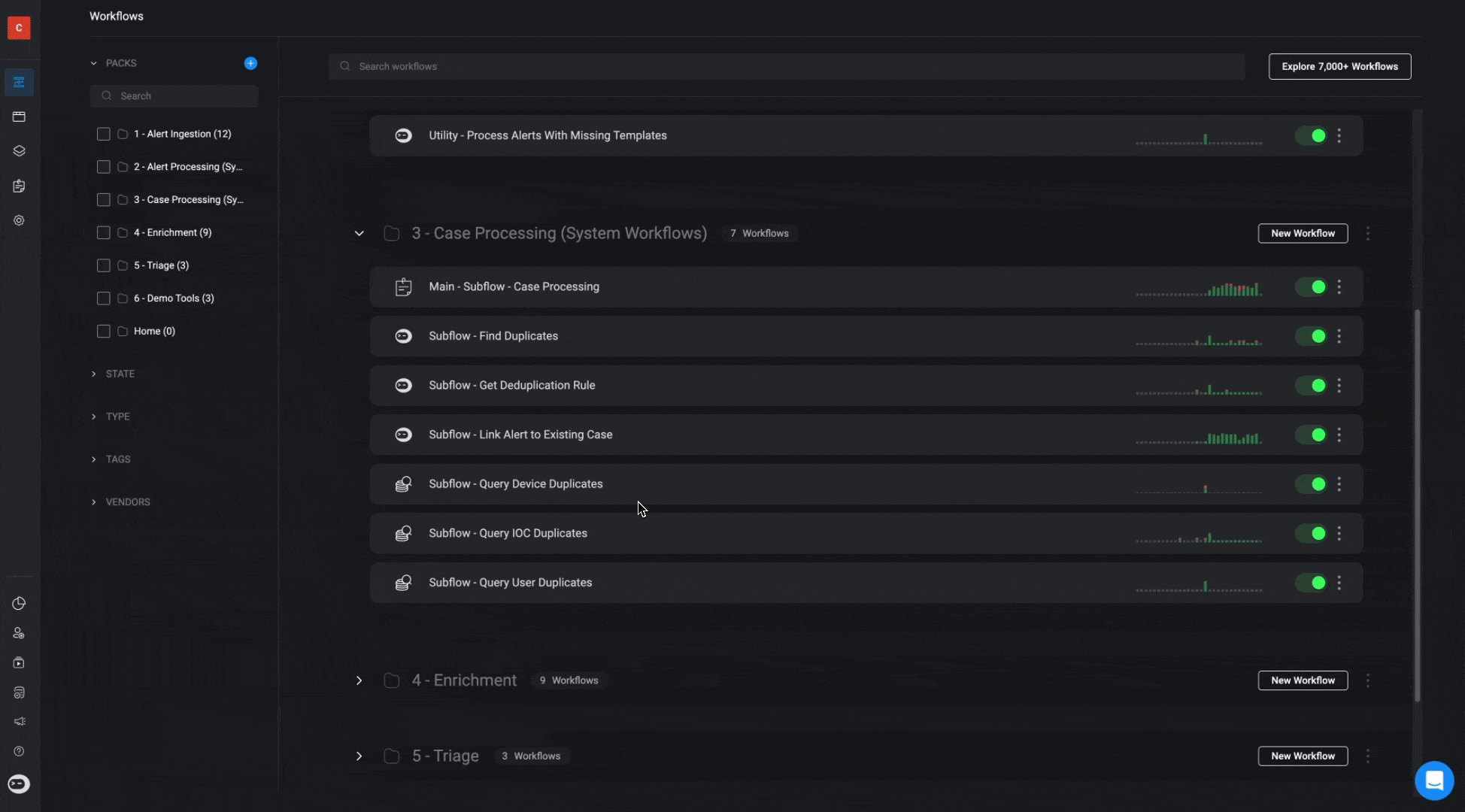These subflows apply similar logic across different databases (Users, Devices, and IOCs) to locate related cases. The goal is to find an existing case based on a provided parameter, prioritizing open cases first. If no match is found among open cases, the subflow will search through cases closed within the last 7 days. If multiple matches are found, the most recently updated case will be selected.