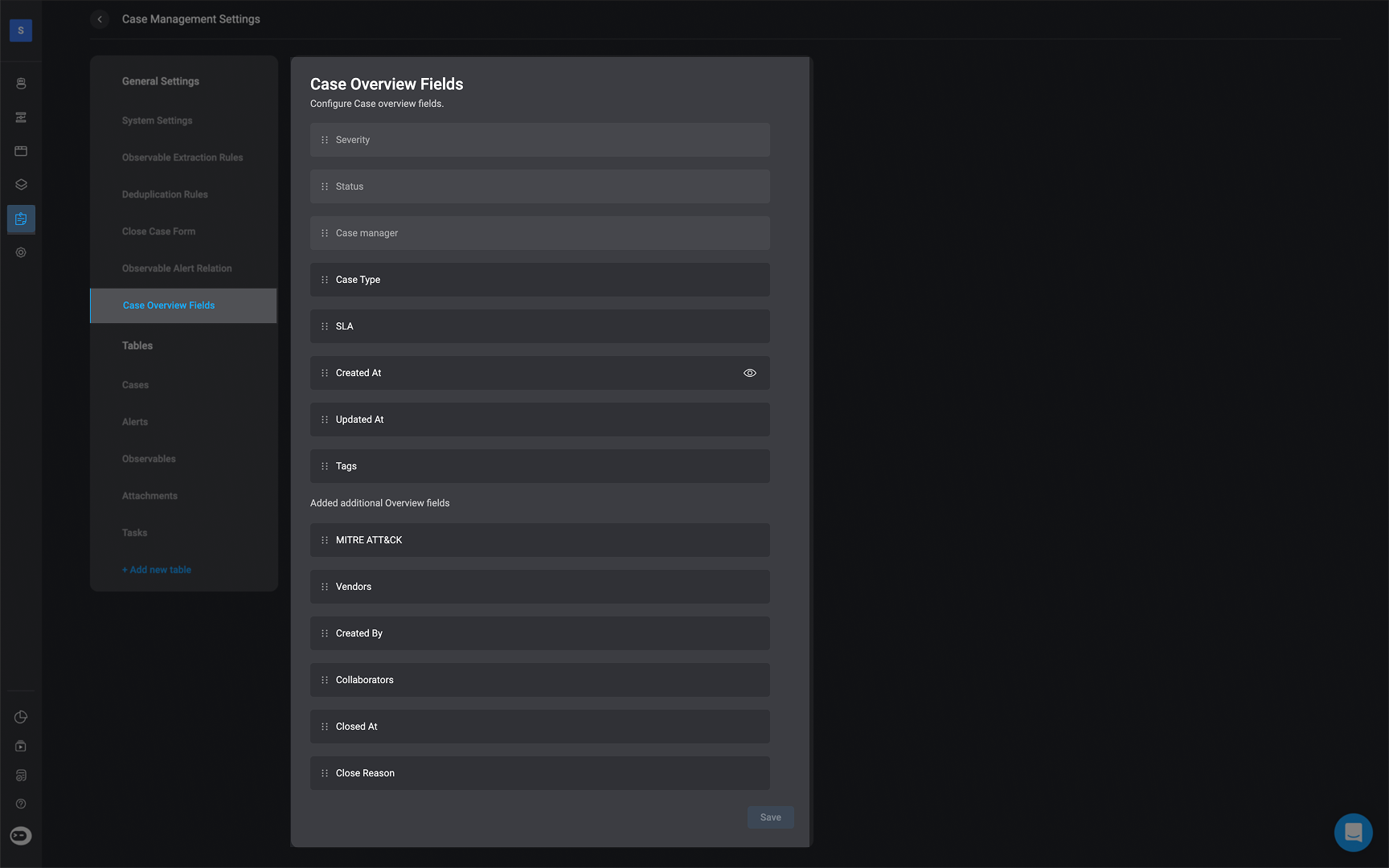 - In the Case Overview Fields tab, you can show or hide specific case field properties according to your preference.