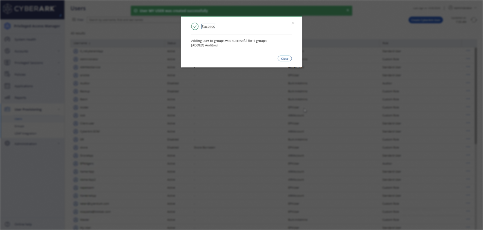 - Proceed and finish your user setup. A success message will confirm the user was added to the selected groups.