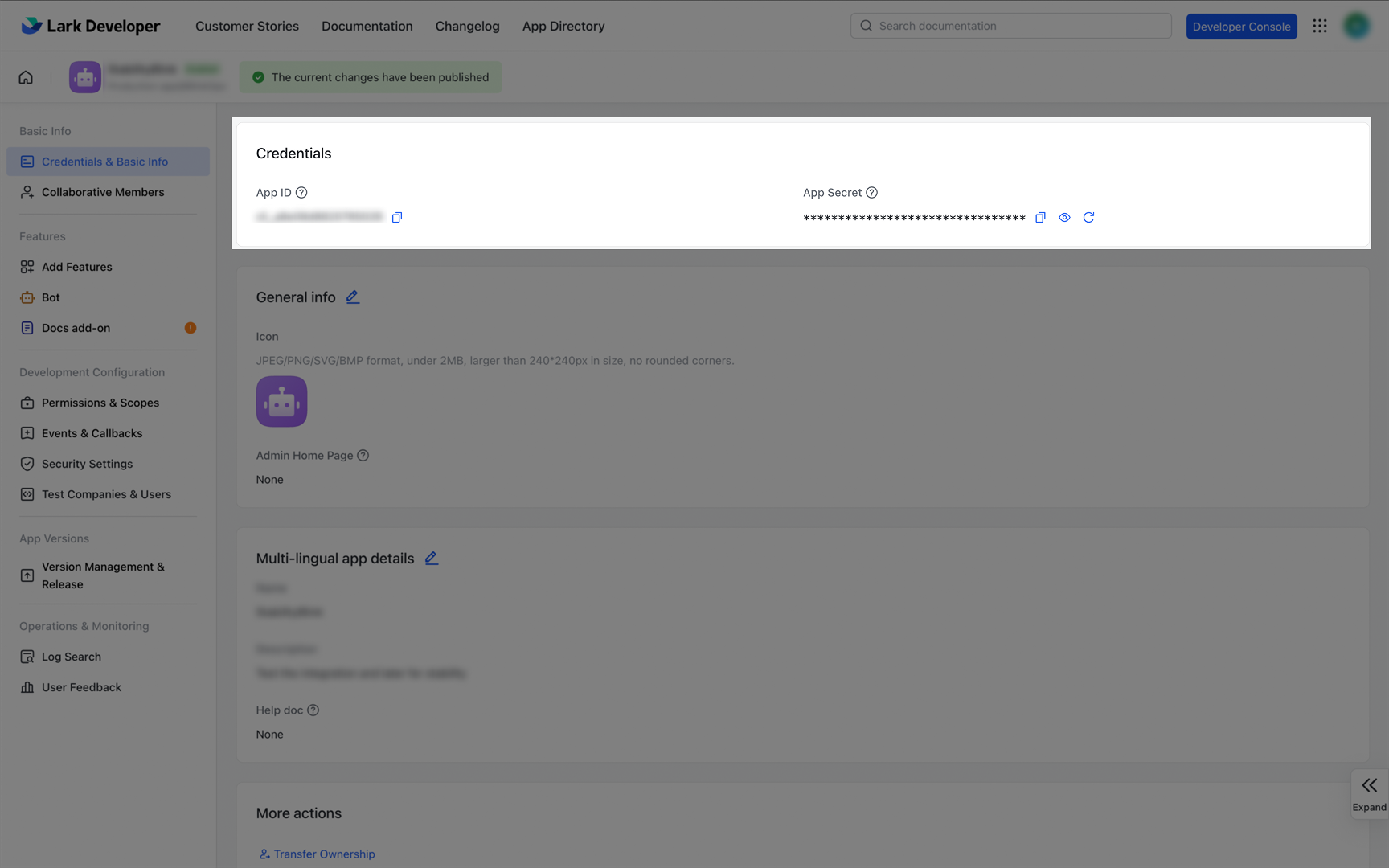 - If you don’t have a bot app yet, follow Lark’s guide on Creating a new bot app to create one.