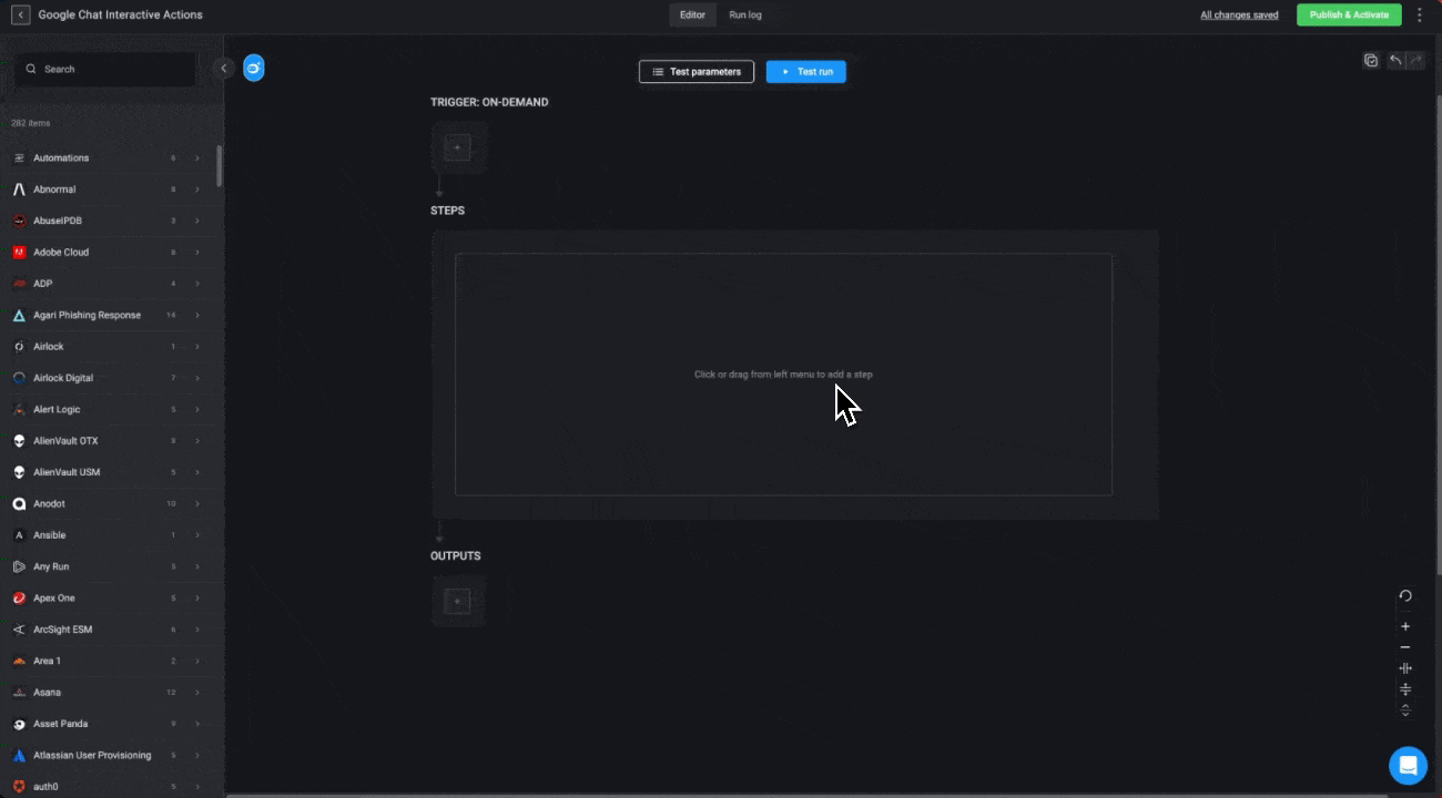 or click the Test run button to test your Workflow. This refers specifically to testing the Google Chat Interactivity steps.