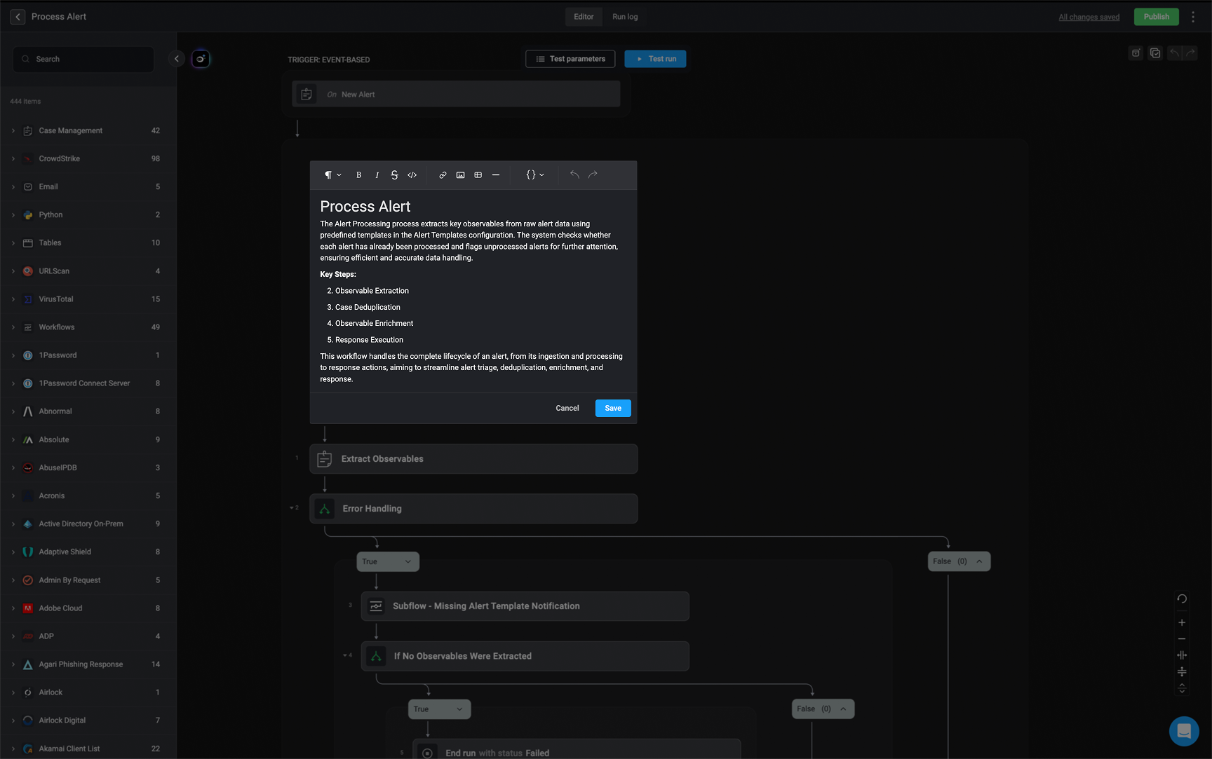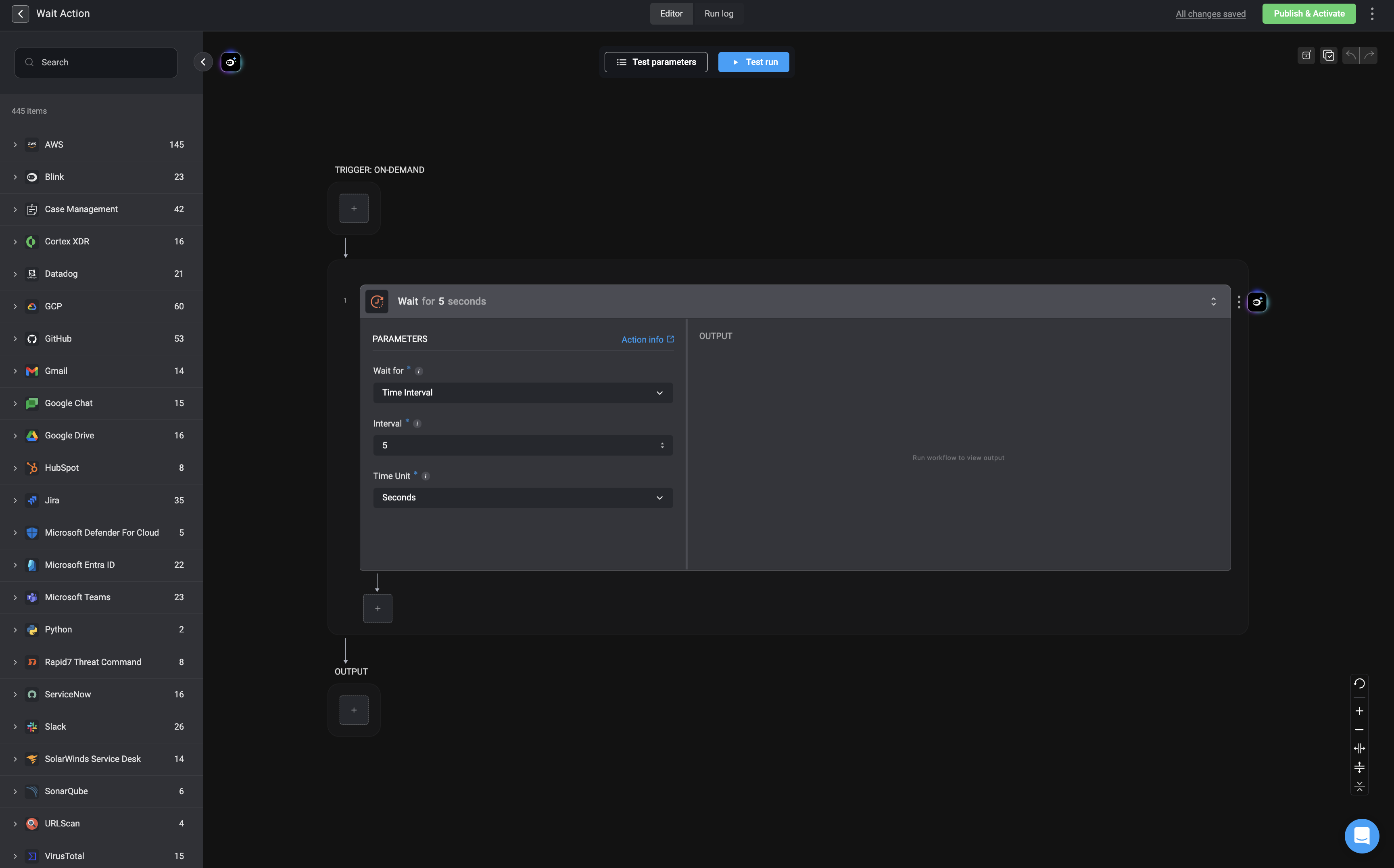 - Run: This step is designed for placing action(s) that contributes the overall Workflow sequence.