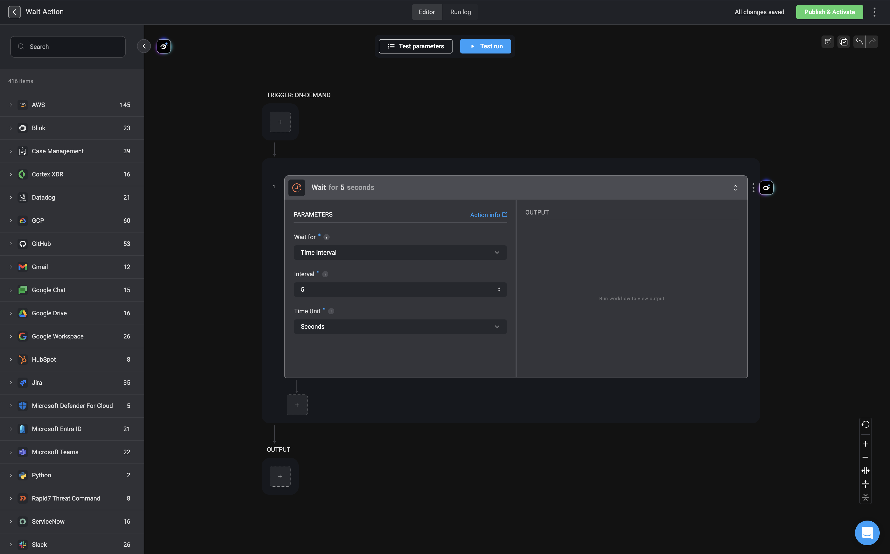 - Run: This step is designed for placing action(s) that contributes the overall Workflow sequence.