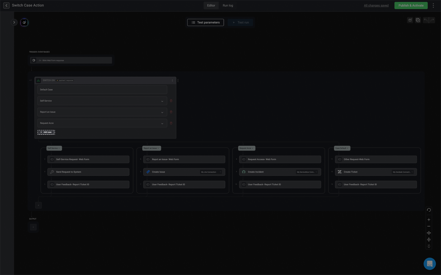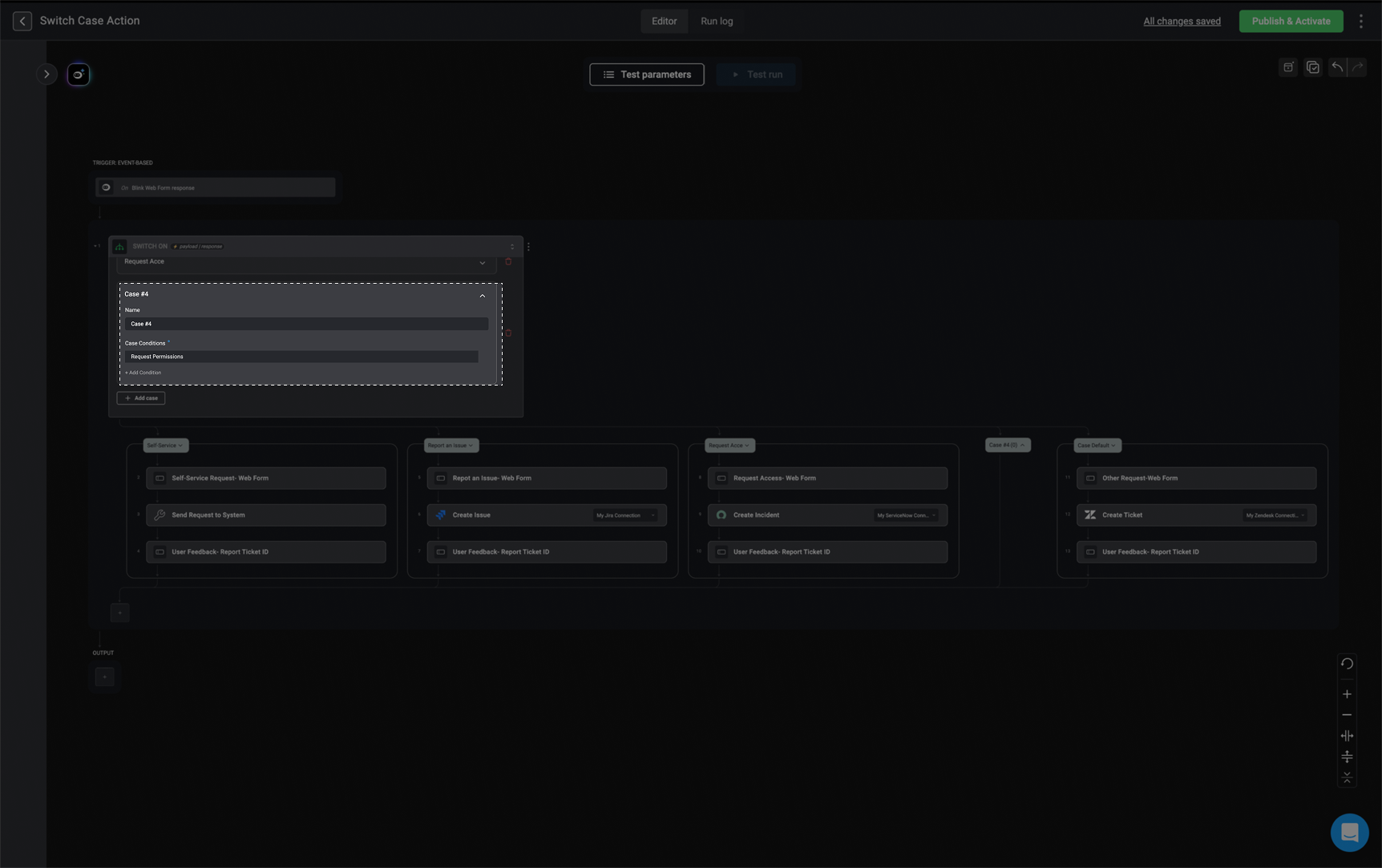 - Inside each case, you can configure a unique set of actions that should run when that case is triggered.