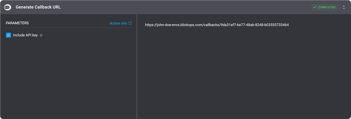 - Add a Wait Action to the following step, to wait for the callback response. Your workflow will pause until the callback request is received. When data is sent to the callback URL, the workflow automatically resumes and continues to the next step, using the data returned by the external system.