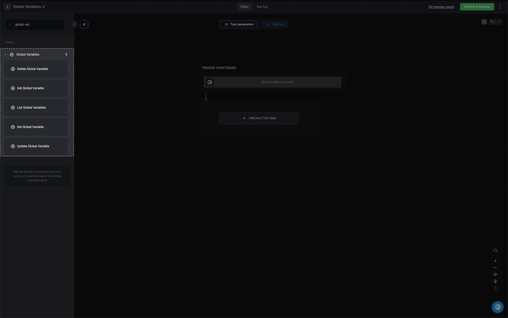 Use global variables anywhere that the variable picker is available. All existing global variables can be found in the GLOBAL VARIABLES section in the variable picker.Access the Variable Picker