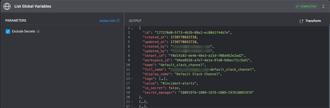 - If it is a _secret global variable, the variable value is not displayed.