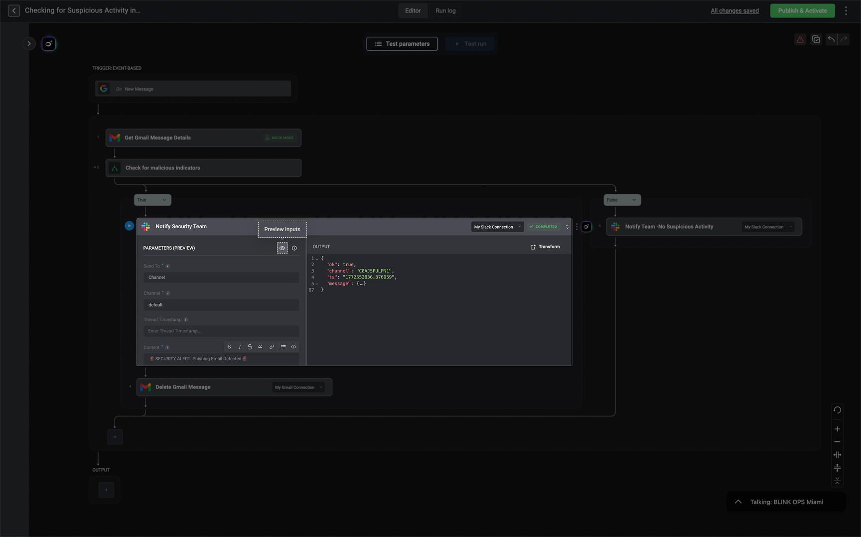 To quickly inspect a step, click the icon. This opens a view showing all input parameters for that step.