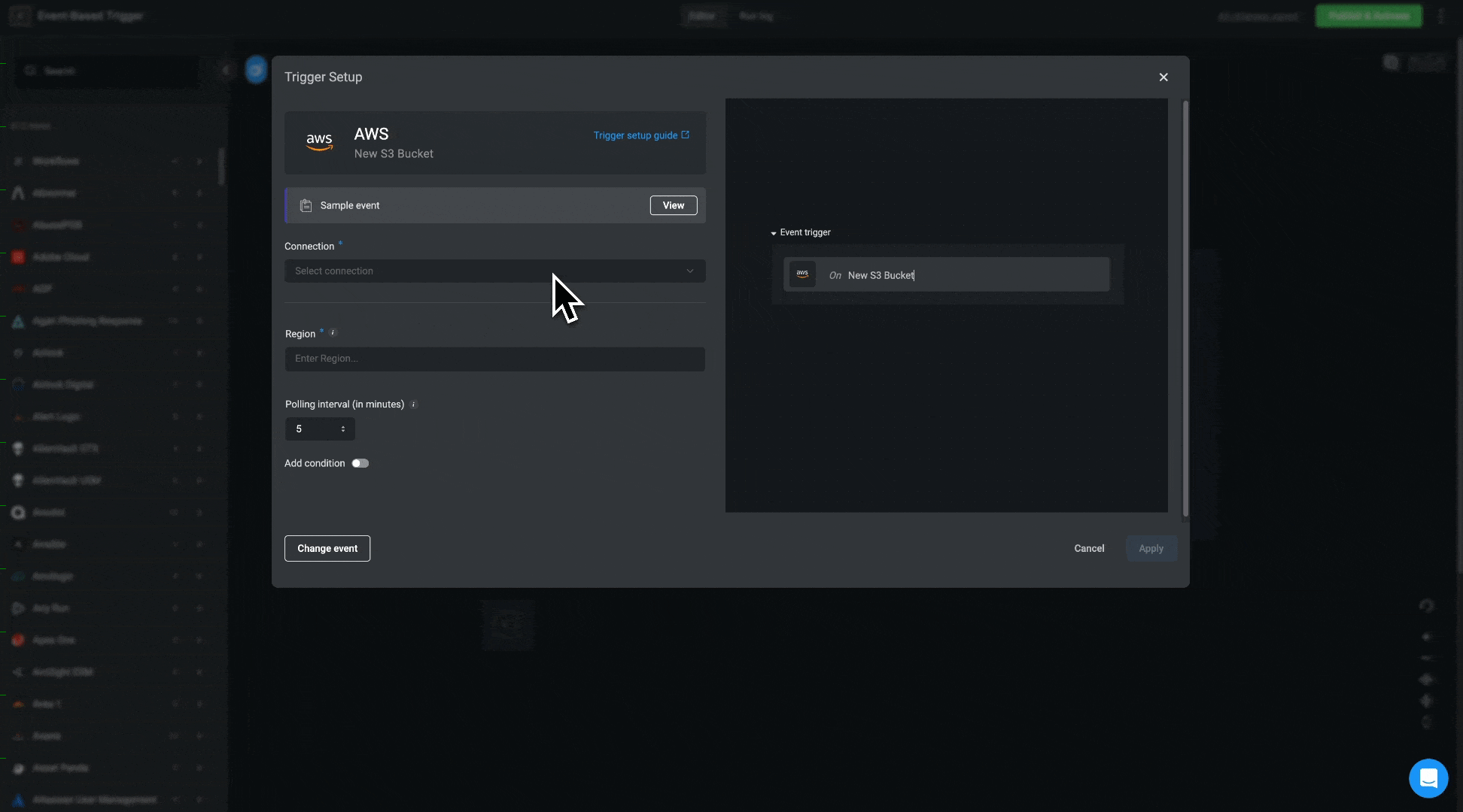 For polling, the default interval is set to 5 minutes which can be adjusted accordingly. Optionally:Parameters are determined based on the source service and the event you selected. For assistance with any of the parameters, refer to the API documentation for the source service.