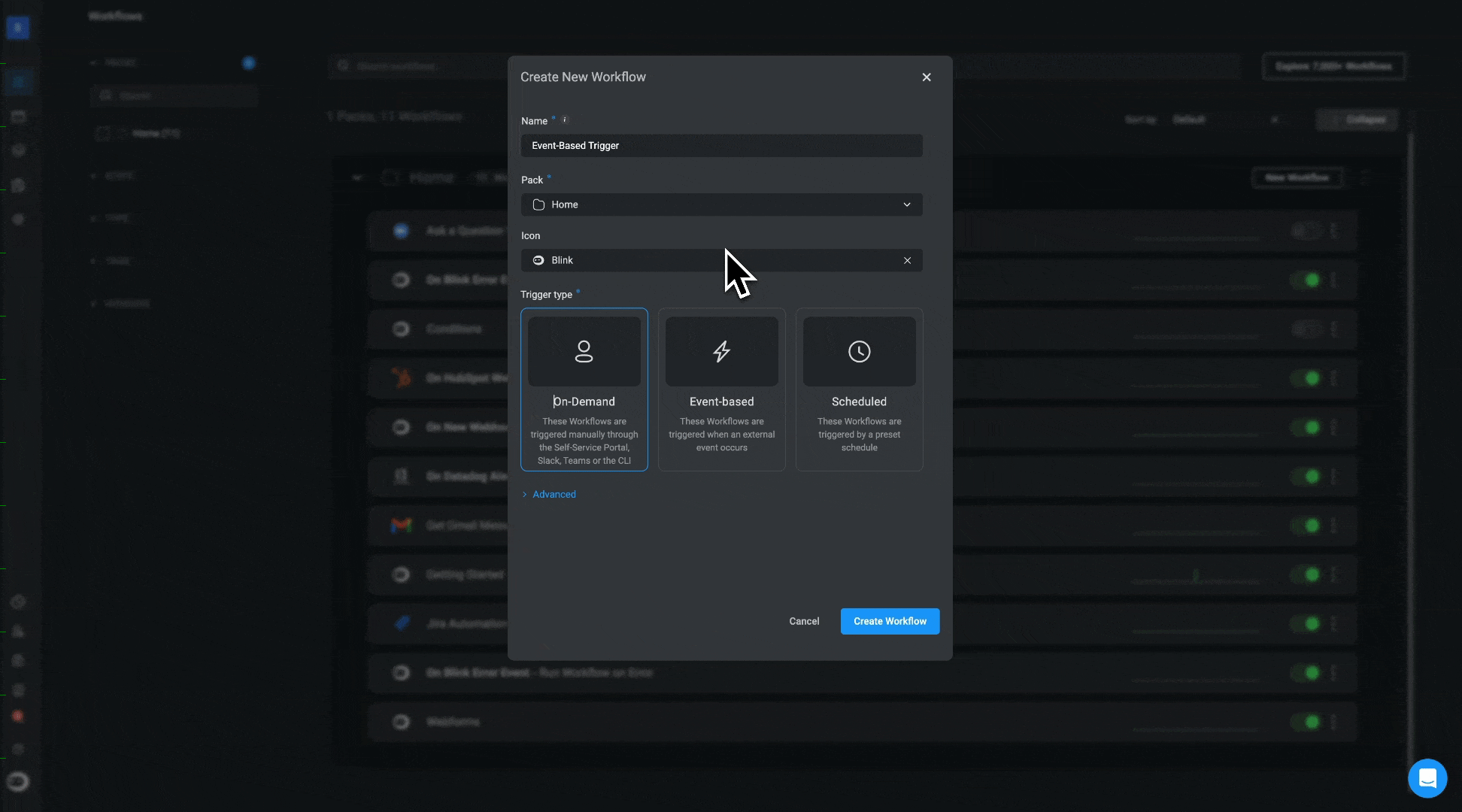 Blink supports multiple event-based triggers, including:| Trigger Type | Description |