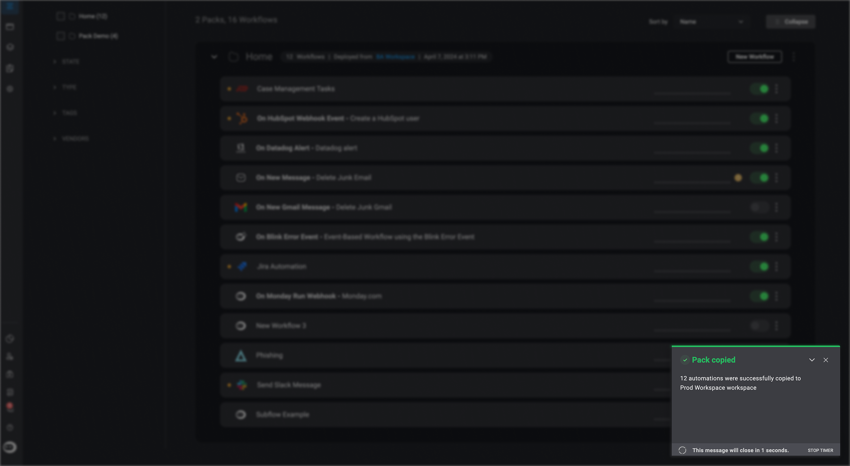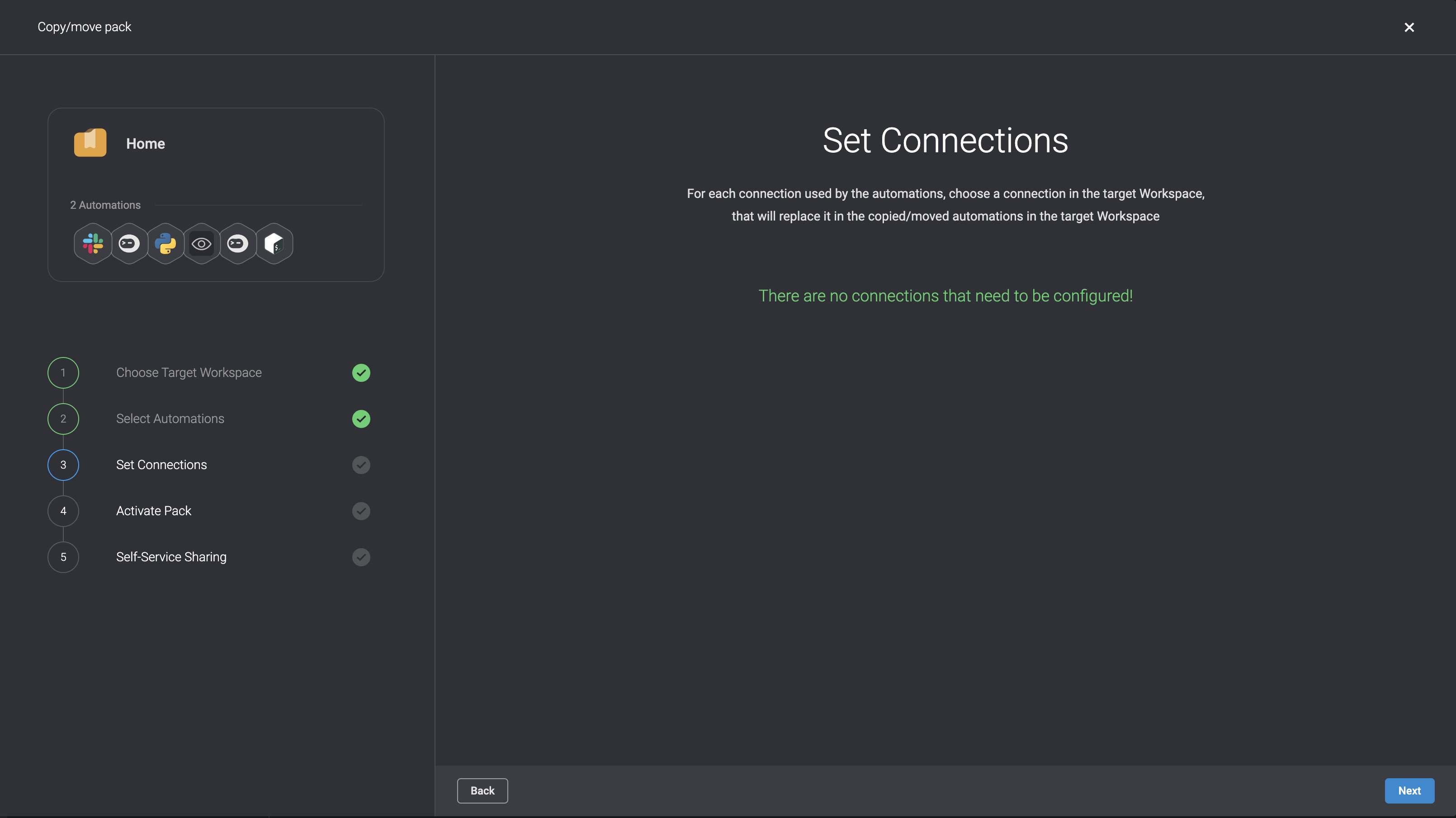 You can then navigate to the target workspace where you can access the copied/moved pack and workflow(s).